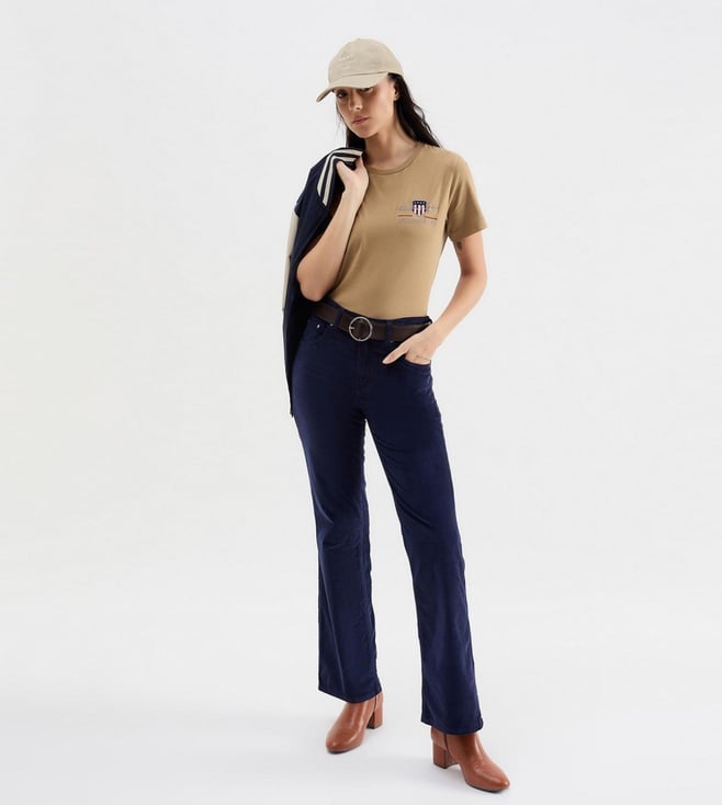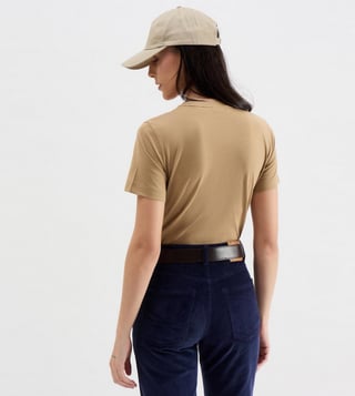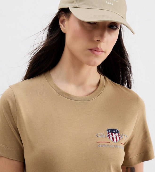 A perfect staple for the laid-back styling is this brown T-shirt by GANT. Structured perfectly for urban women, it features a crew neckline and short sleeves. The Archive Shield styling on the top left further adds to its sophistication. Team it with a pair of dark jeans along with boots or sneakers.