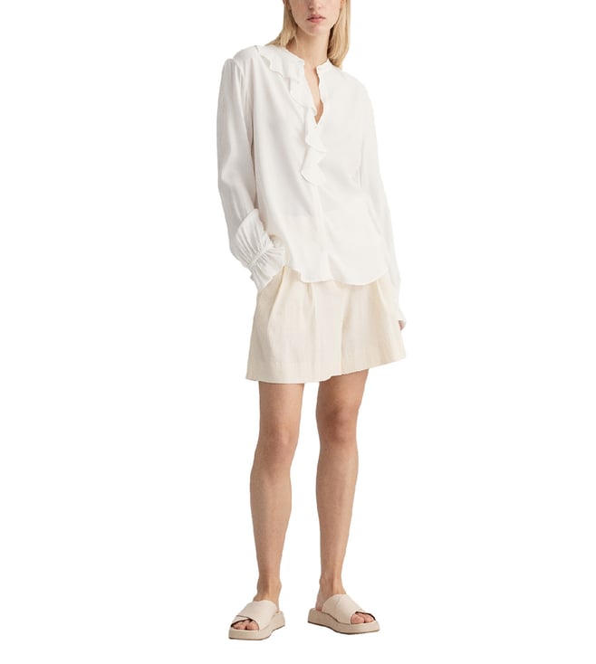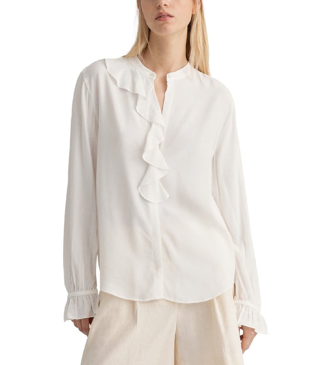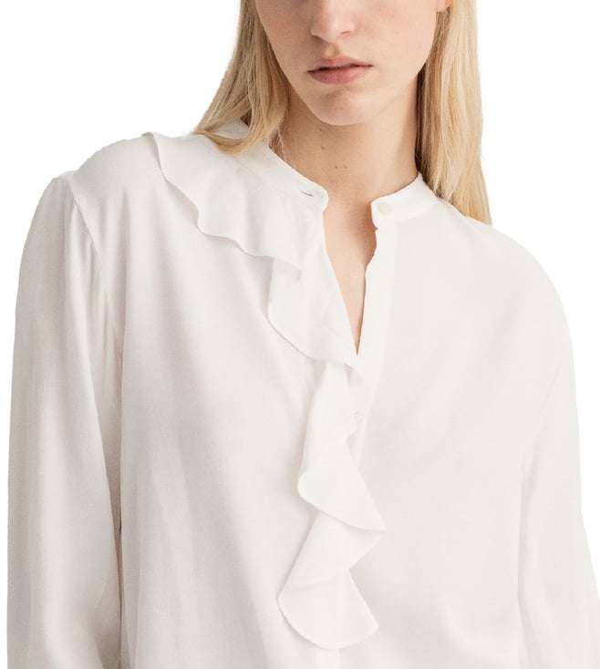 Crafted in a fine fabric this shirt features frilled details at the neck and cuffs for a classic feminine look. It assures the utmost comfort and stylish look both at the same time. This versatile piece is built to flatter you all day long.