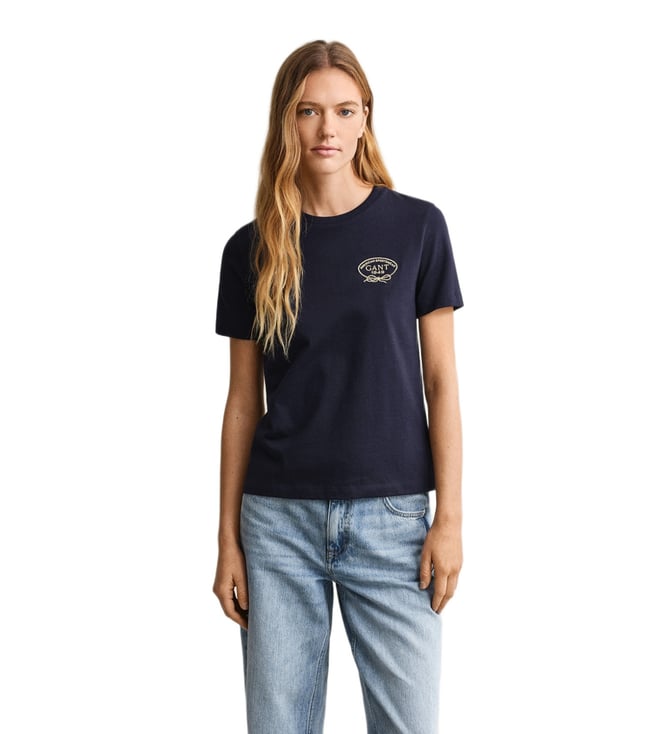 Women Navy Blue Archive Shield T-Shirt