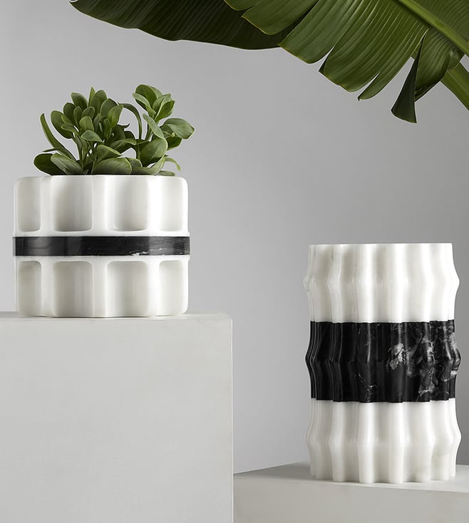 Gauri Khan Designs Black And White Timeless Marble Planter
