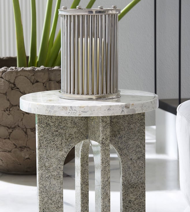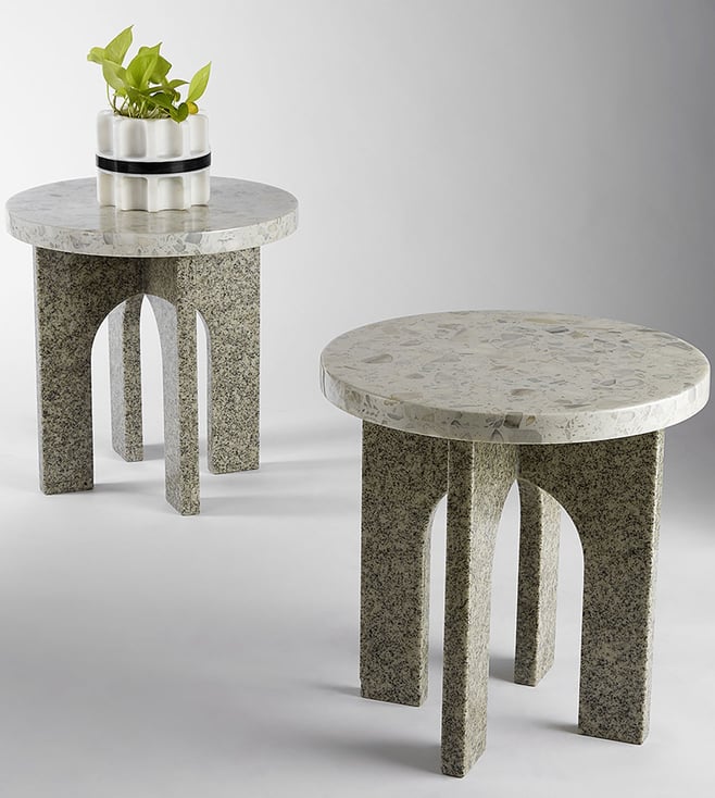 Gauri Khan Designs Grey Terazzo Marble Terazzo Side Table