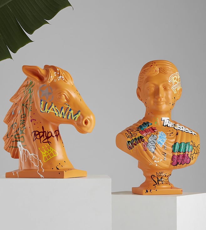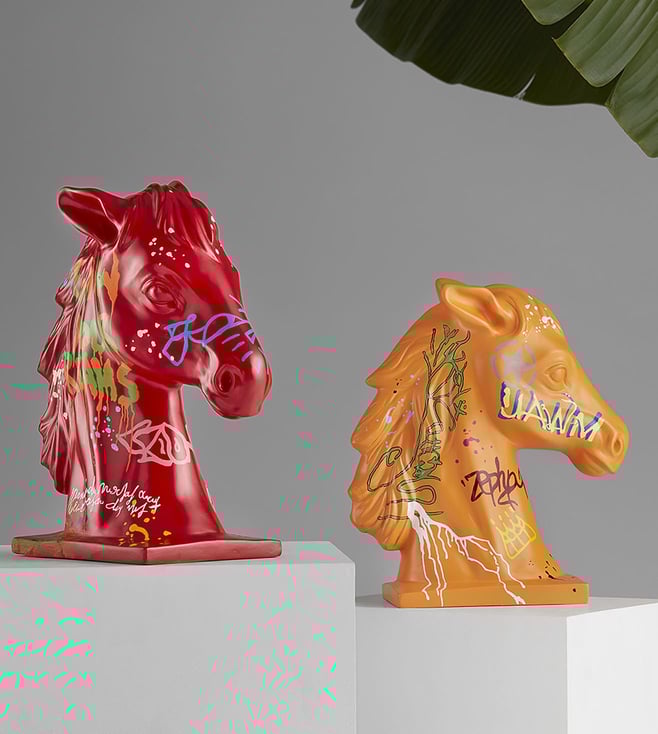Gauri Khan Designs Orange Wooden Horse Artefact