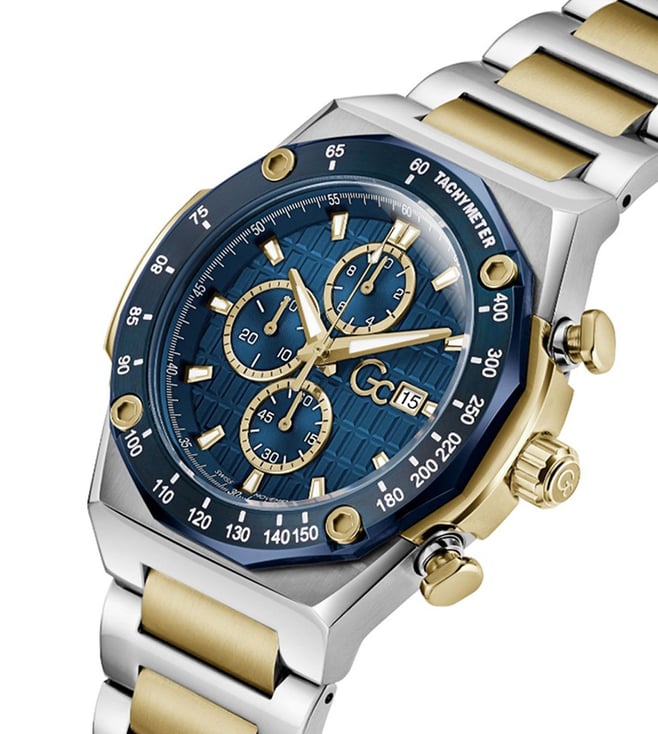 Elevate your style with the Gc Z68001G7 Idolsport Chronograph Analog Watch for Men. This sleek and sophisticated timepiece combines precision Swiss craftsmanship with a sporty design, perfect for the modern man on the go. With a chronograph function and durable stainless steel construction, this watch is not only a fashion statement but also a practical accessory for everyday wear. Whether you're hitting the gym or heading to a business meeting, the Gc Idolsport Chronograph Watch will keep you on time and in style.