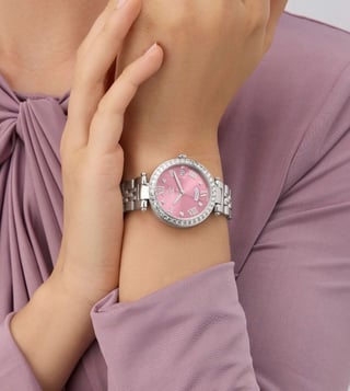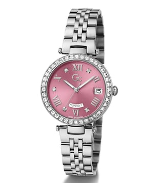 Elevate your style with the Gc Z01024L3 Flair Crystal Analog watch for women. This stunning timepiece features a shimmering crystal-encrusted bezel and a sleek stainless steel bracelet, making it the perfect accessory for any outfit. The precision quartz movement ensures accurate timekeeping, while the scratch-resistant mineral crystal protects the dial. With its elegant design and durable construction, this watch is a must-have for any fashion-forward woman looking to add a touch of glamour to her wardrobe. Make a statement with the Gc Flair Crystal Analog watch.