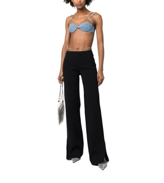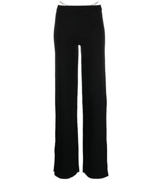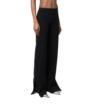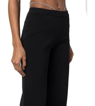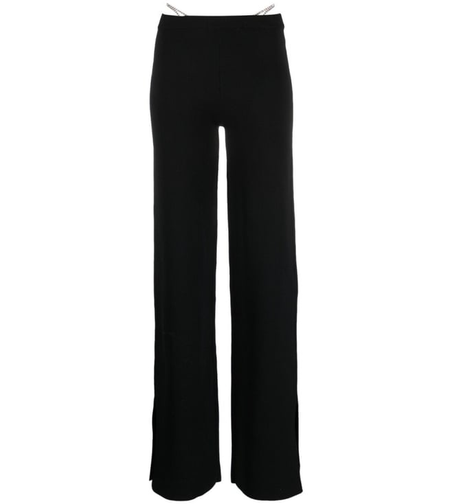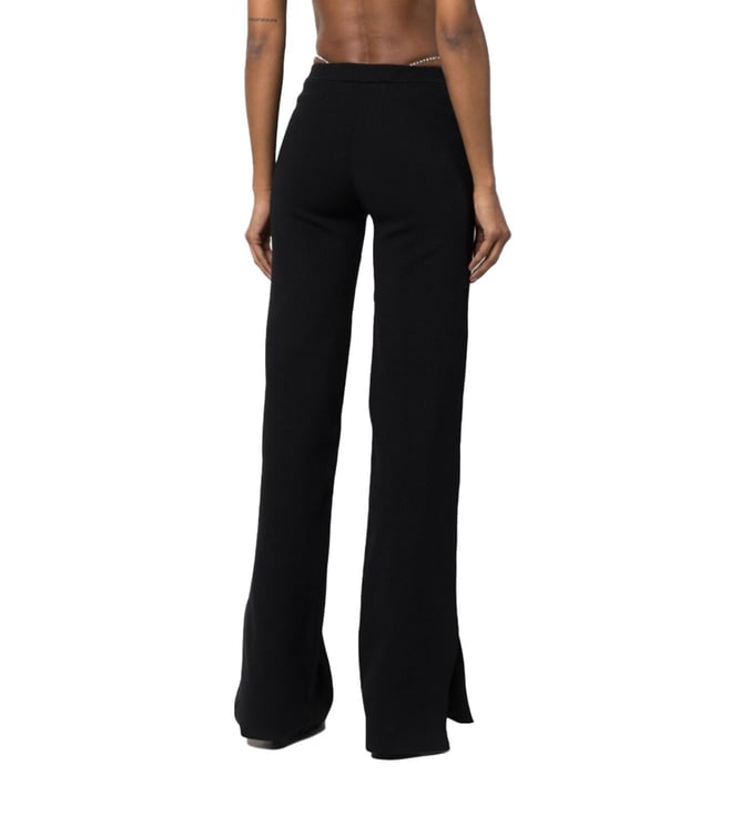 Elevate your wardrobe with the Gcds Black Loose Fit Trousers. Designed with crystal-thong flared trousers from gcds featuring black, thong strap, crystal embellishment, flared, mid-rise and side slits. this piece fits true to size. we recommend you get your regular size, model is 1, 75m / 5ft 8in wearing size s, these trousers combine comfort and sophistication for everyday wear.