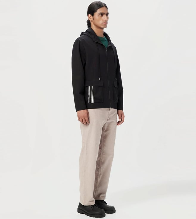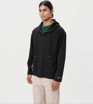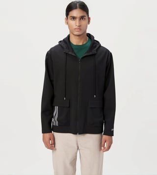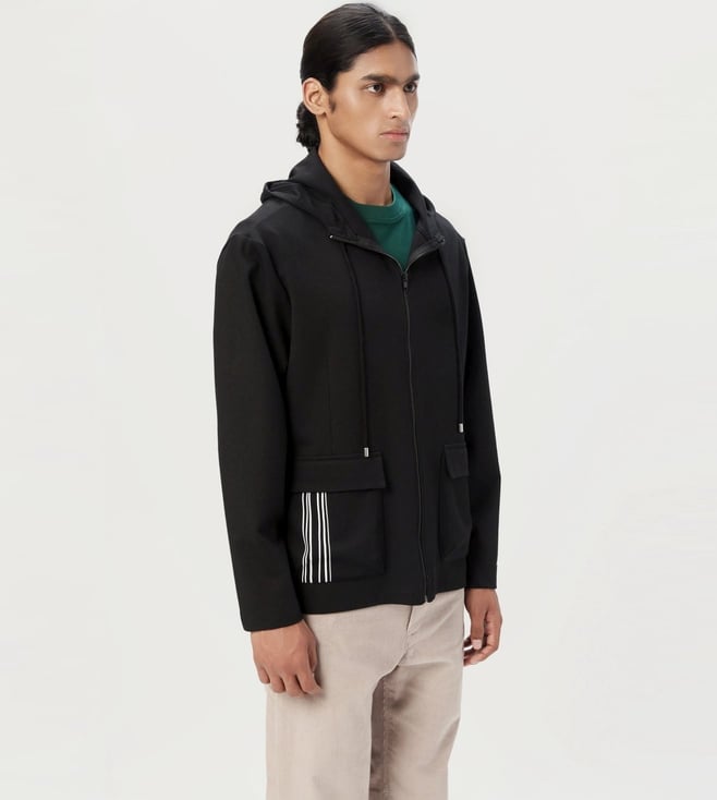 Genes Lecoanet Hemant Black Cotton Comfort Fit Hooded Jacket