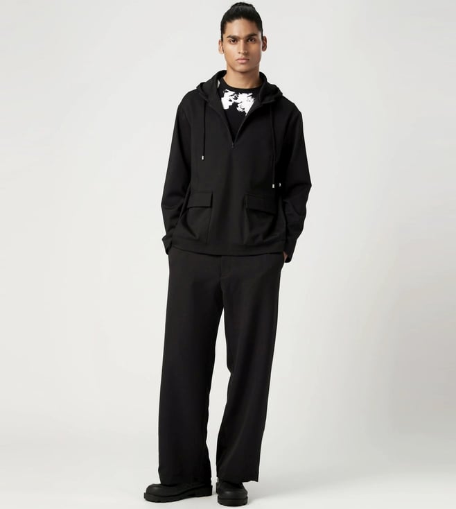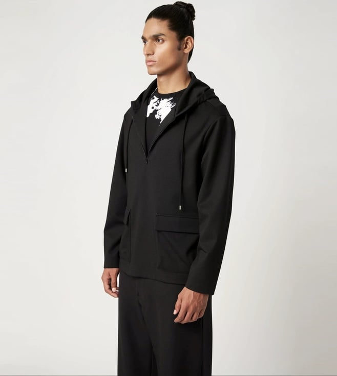Genes Lecoanet Hemant Black Cotton Comfort Fit Hooded Jacket