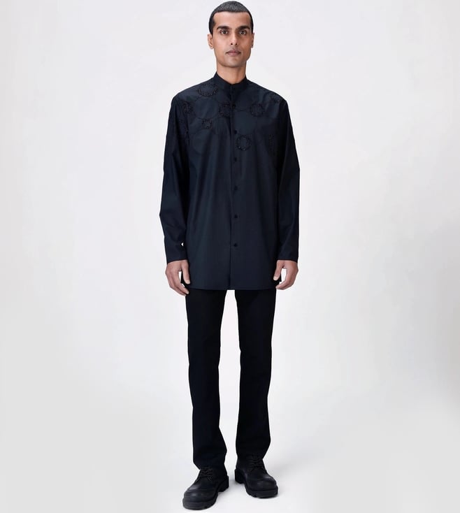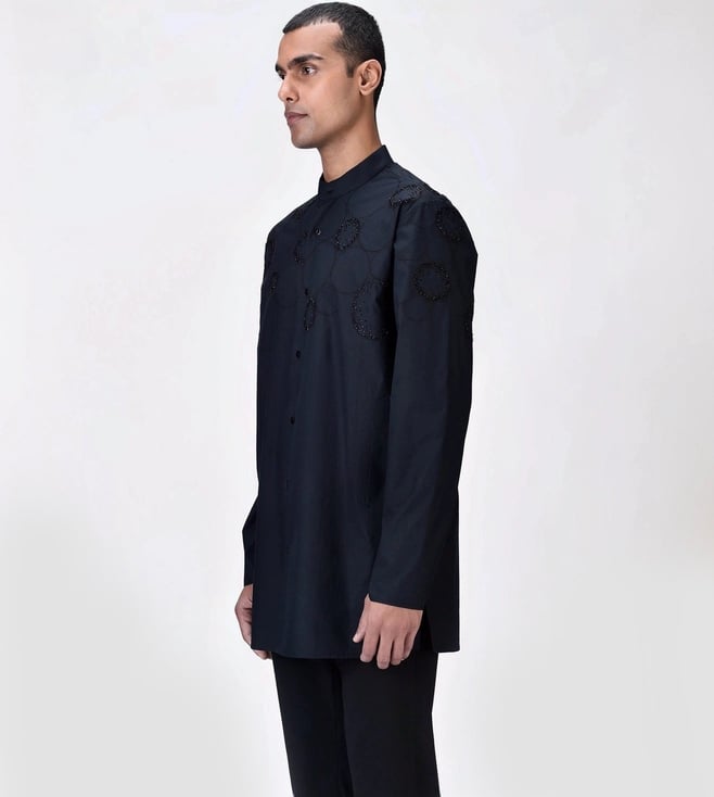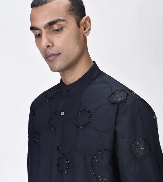 Genes Lecoanet Hemant Black Giza Cotton Poplin Kurta