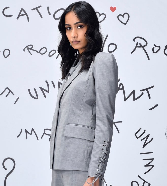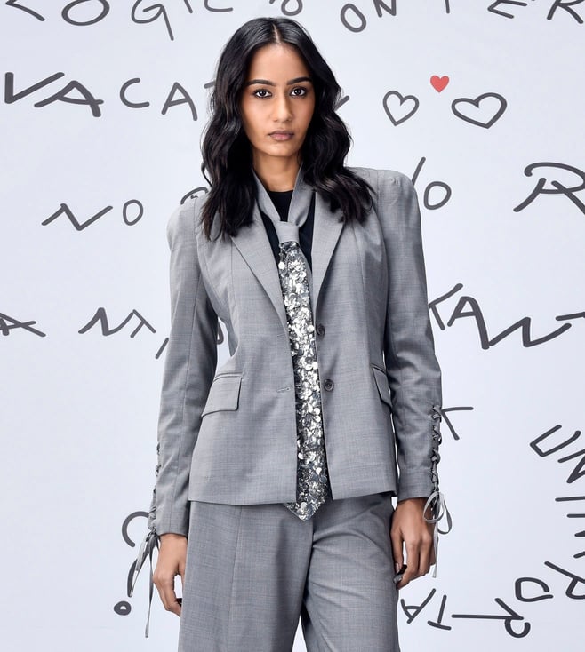 Genes Lecoanet Hemant Pearl Grey Polyester Comfort Fit Jacket