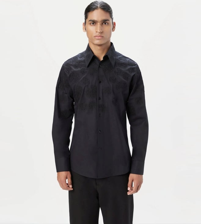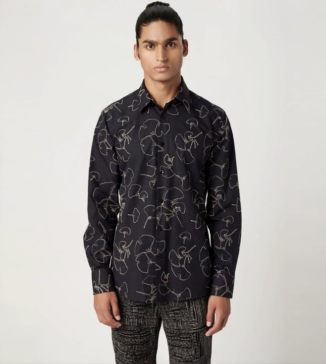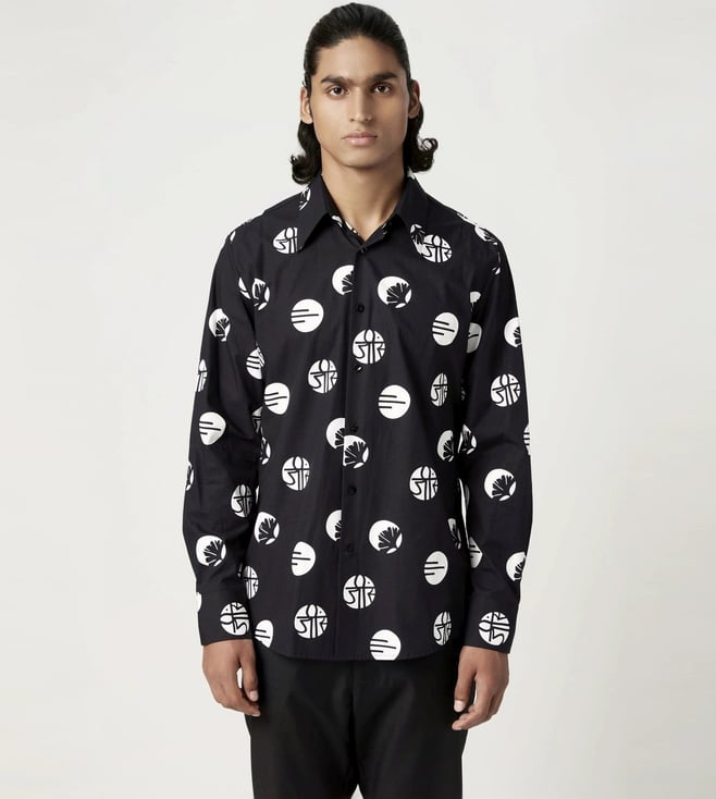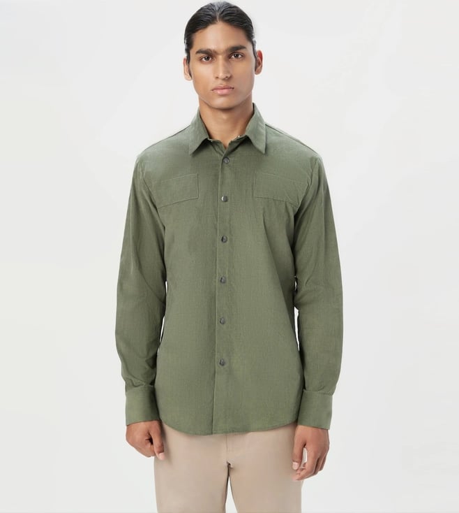 Black-Green Giza Cotton Poplin Comfort Fit Casual Shirt