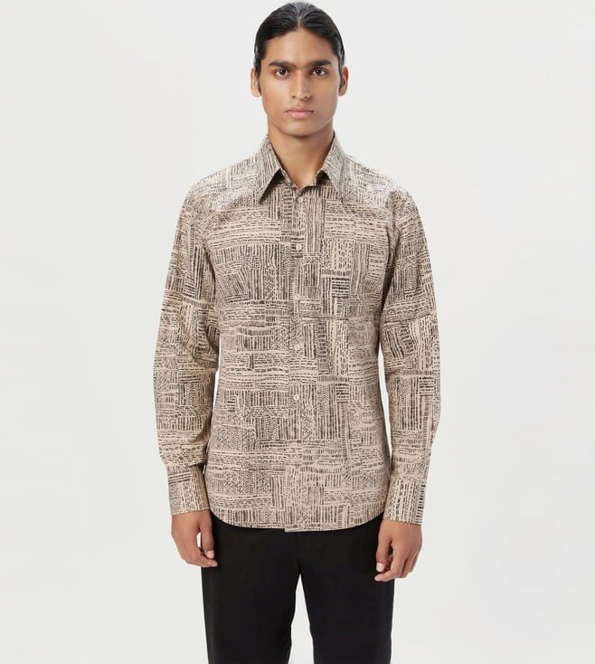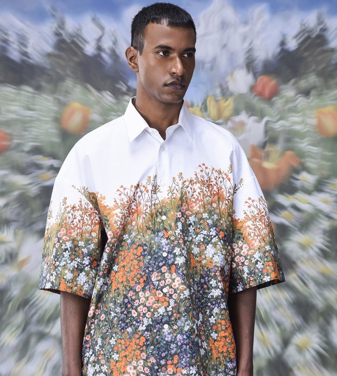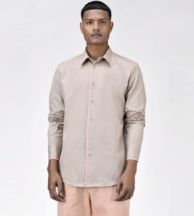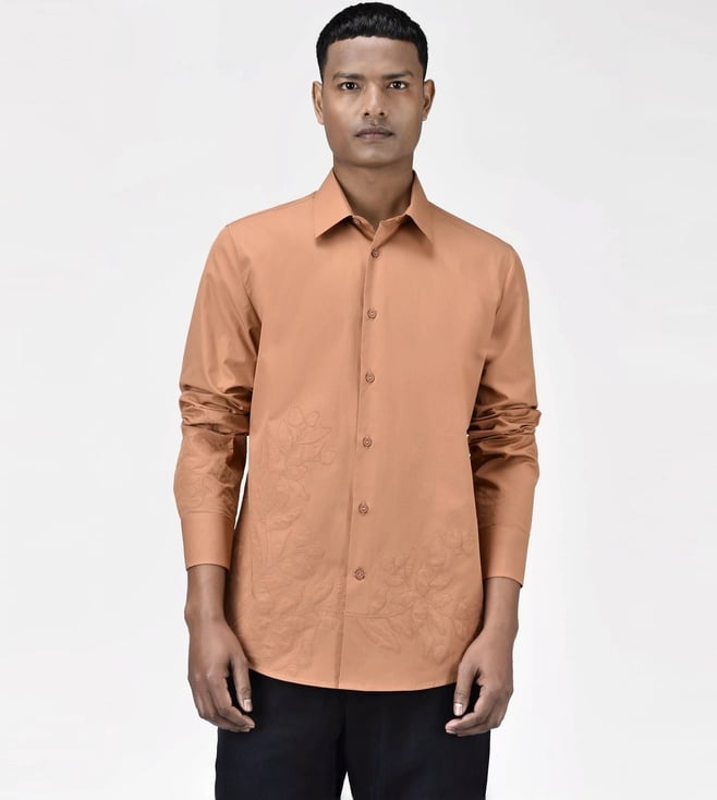 Multi Orange Giza Cotton Poplin Comfort Fit Casual Shirt