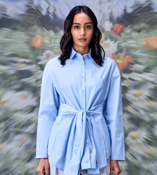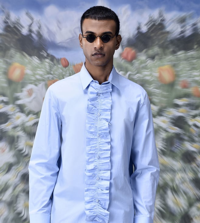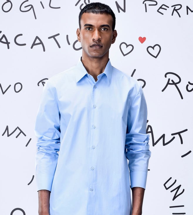 Light Blue Giza Cotton Poplin Comfort Fit Casual Shirt