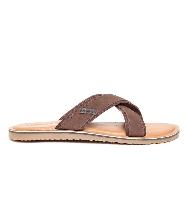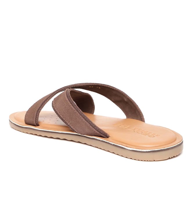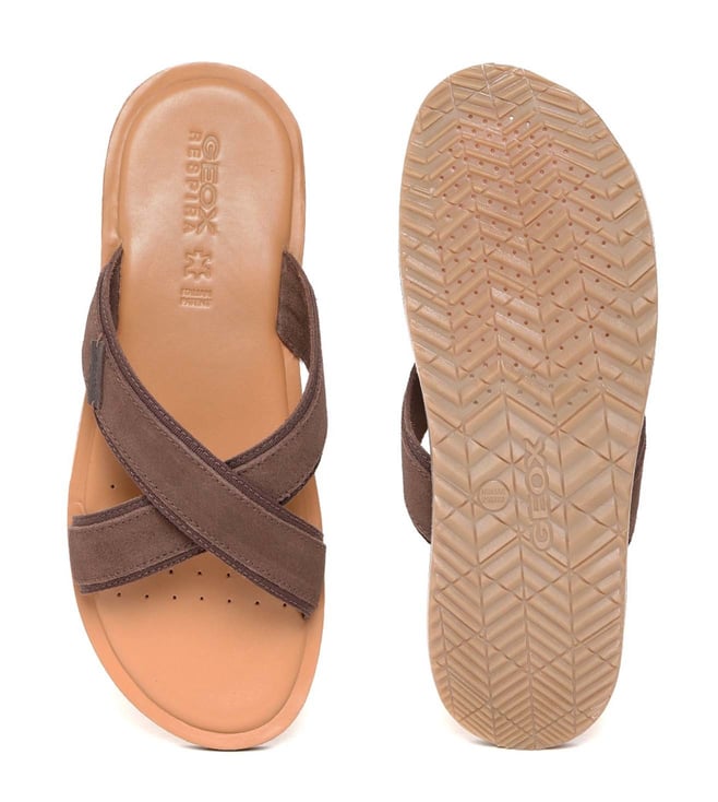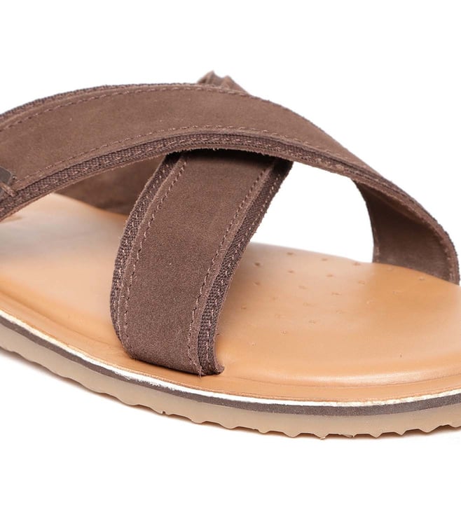 GEOX Men's Suede Leather Brown Cross Strap Sandals