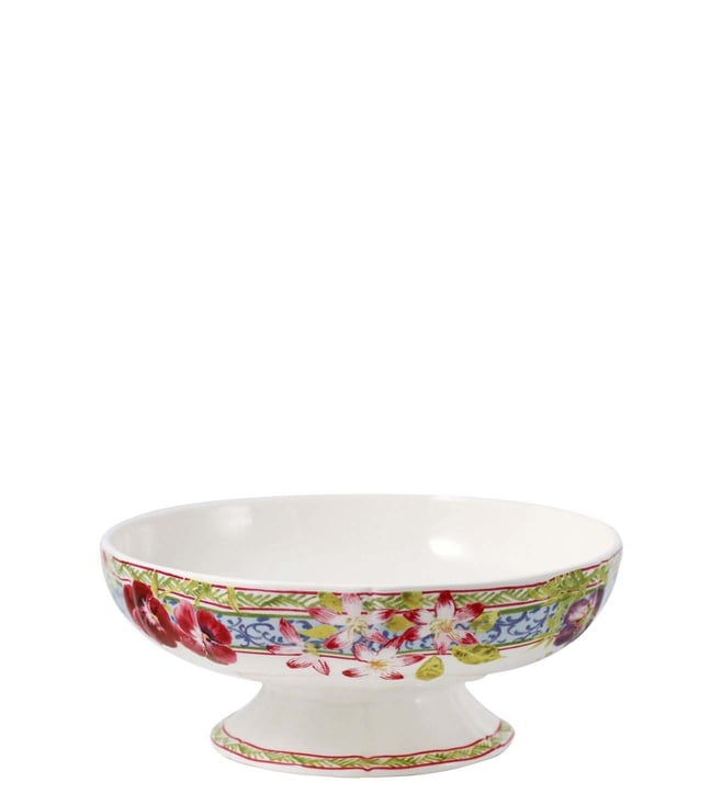 White Earthenware Millefleurs Footed Fruit Bowl