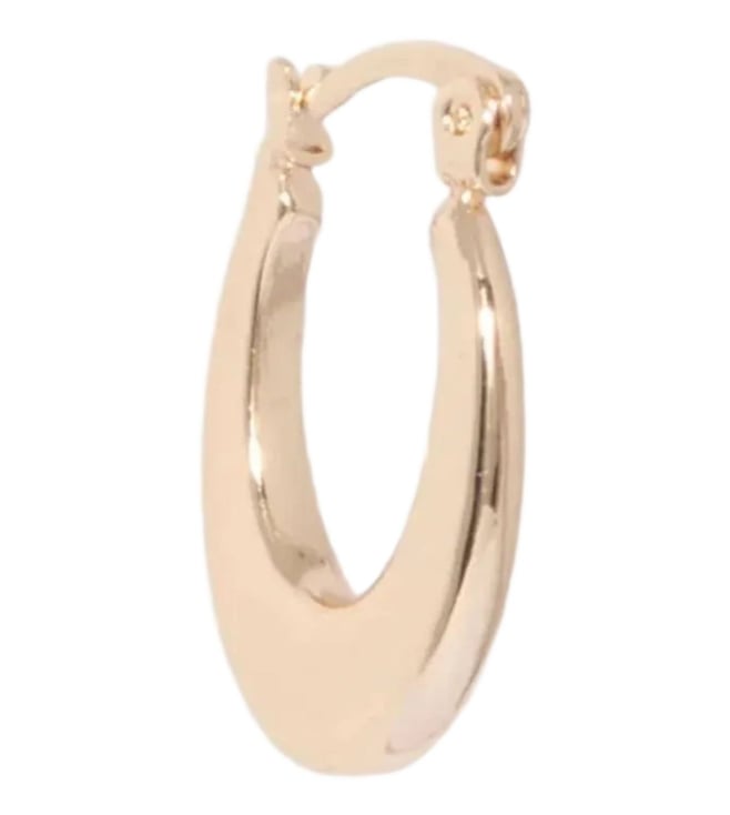 Elevate your look with the gigi gold plated hoop earring from Forever New. These elegant hoops are the perfect accessory for day to night styling, featuring a twisted design with a glossy gold tone finish for a touch of luxury. The latched fastening ensures a secure fit for pierced ears, making them a must have addition to your jewelry collection. Add a touch of sophistication to any outfit with these timeless hoop earrings.