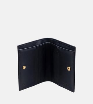 Crafted with smooth nappa leather, it is a compact wallet with RFID blocking technology and ample space for your cards, bills, cash and coins. It has one bill compartment, six CC slots, and two slip pockets.