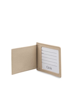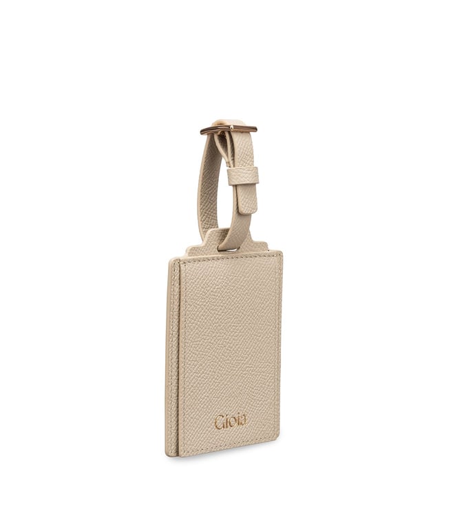 This stylish cream coloured leather luggage tag from Gioia is perfect for casual occasions. With the brand name, Rober, embossed on the tag, it adds a touch of sophistication to your luggage. Suitable for both men and women.' Disclaimer: All other items in the image are only for display purposes and will not be a part of the delivery content. Product colour may slightly vary due to photographic lighting sources. Country of Origin - India.