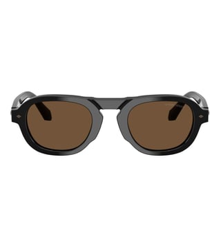 Get appreciated for your style with this pair of Sunglasses from Giorgio Armani. Fashioned from Acetate, the lightweight frame vaunts a Black hue. The Brown lenses are crafted with care from Glass that not only lends you a smart look but also assures complete protection of your eyes. The Full Rim design further magnifies its overall charm.