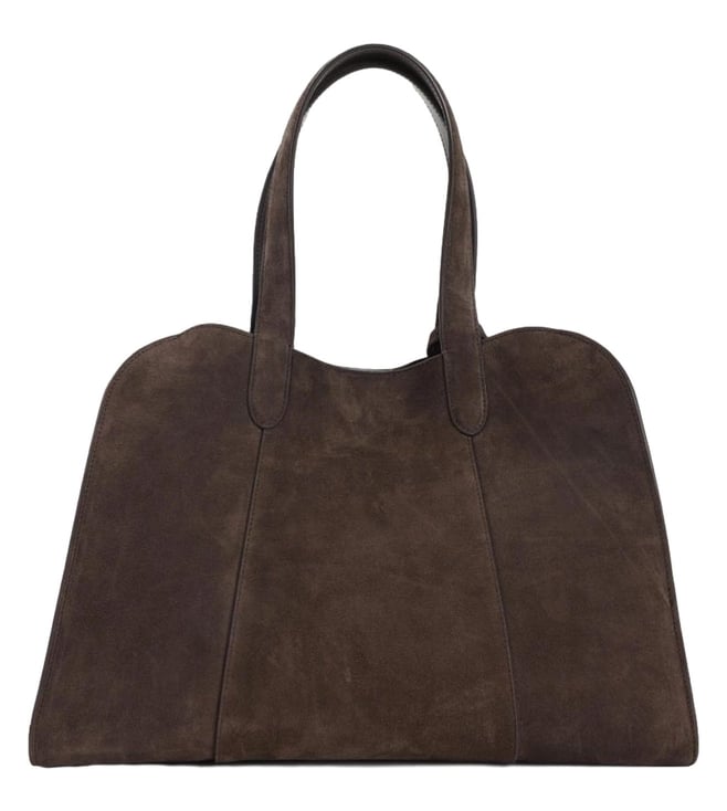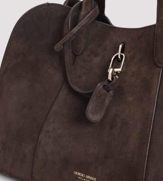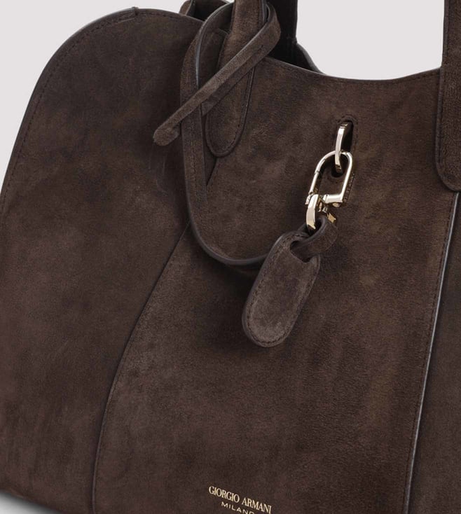 Dark browndouble handlesring and snap-hook claspsides closed with covered press studsinterior zip pocket, patch pocket and heat-stamped giorgio armani logoheat-stamped giorgio armani logo on the bags front panel.