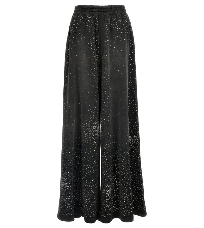 Black Embellished Loose Fit Rhinestone Trackpants