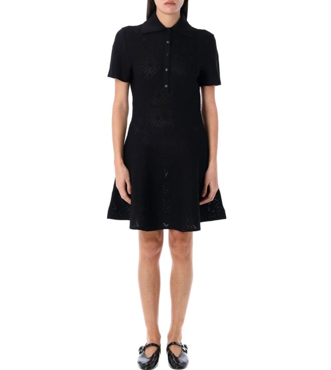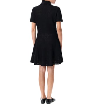 Embrace timeless elegance with this sophisticated black dress, crafted from a luxurious blend of 91% viscose, 6% nylon, and 3% polyester. The solid pattern exudes classic charm, while the short sleeves and shirt collar add a touch of modernity. Designed for the contemporary woman, this dress features a sleek closure that ensures a flattering fit. Perfect for any occasion, its versatile style effortlessly transitions from day to night, making it a must-have staple in your wardrobe.