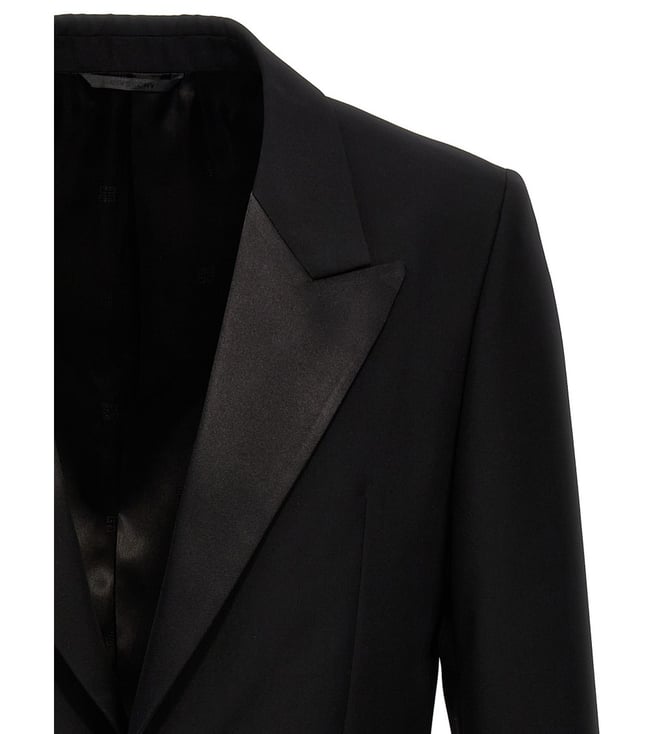 Elevate your style with the Givenchy Black Double Breasted Slim Fit Blazer. Peack lapel' doublebreasted wool blazer with satin lapels, button closure, pockets, long sleeves, back vent. Slim fit. Products purchased from Darveys are supported exclusively by the warranty/exchange policies of Darveys and its partner boutiques. Brand owners and their channel partners are not responsible for exchange/warranty services for items purchased through Darveys.