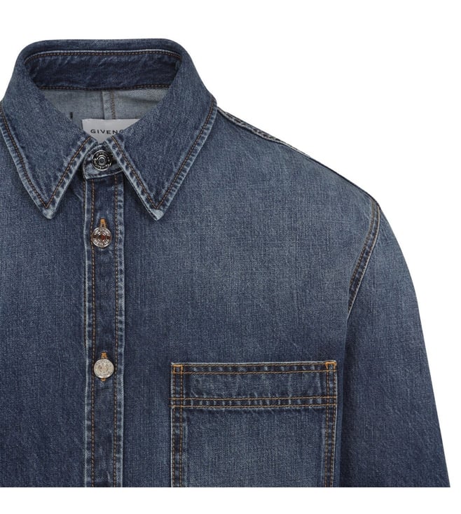 Elevate your style with the Givenchy Dark Blue Denim shirt. Collar, long sleeves, front button closure, pockets. Products purchased from Darveys are supported exclusively by the warranty/exchange policies of Darveys and its partner boutiques. Brand owners and their channel partners are not responsible for exchange/warranty services for items purchased through Darveys.