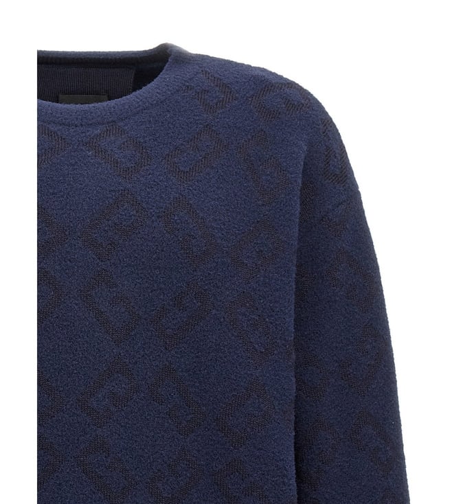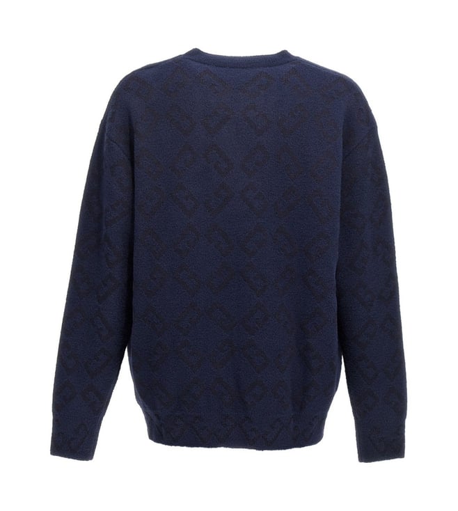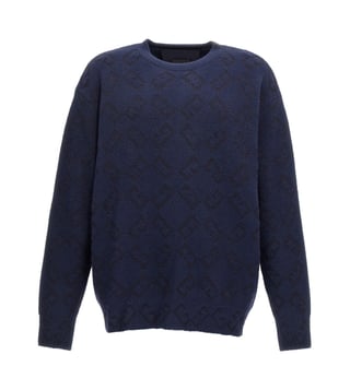 Elevate your style with the Givenchy Navy Logo Embroidery Geometric Sweater. Wool blend sweater with allover embroidered logo, crew neck, long sleeves. True to size fit. Products purchased from Darveys are supported exclusively by the warranty/exchange policies of Darveys and its partner boutiques. Brand owners and their channel partners are not responsible for exchange/warranty services for items purchased through Darveys.