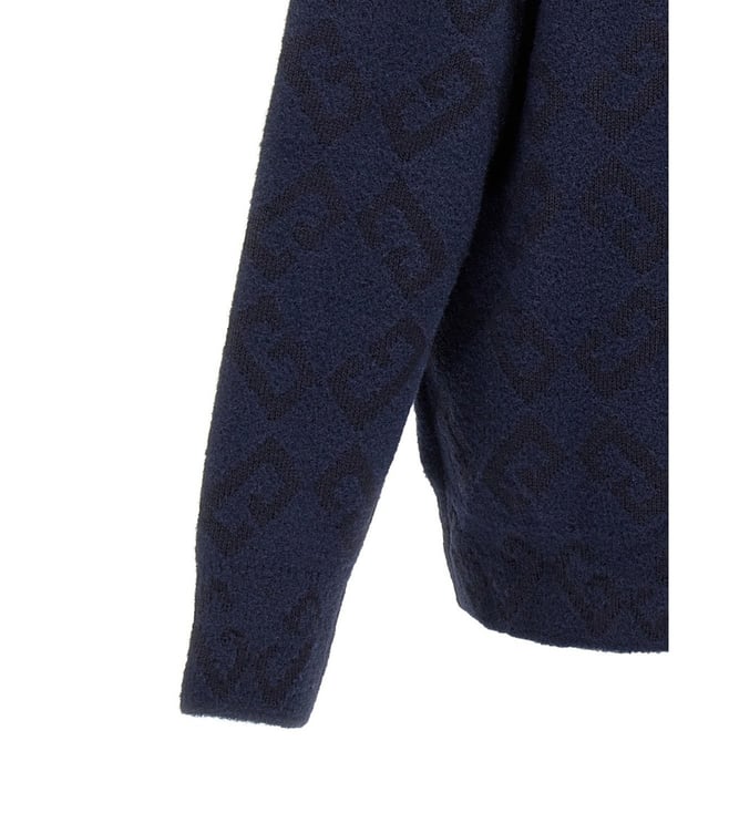 Givenchy Navy Logo Embroidery Geometric Sweater