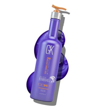 The GKHair shampoo is a juvexin and natural plant extracts enriched with a conditioning formula that tones down brassiness on blonde and silver hair. It renews and refreshes faded highlights and ash-toned hair, removes the dull yellow in silver and grey-white hair and leaves hair shiny and soft without residue.