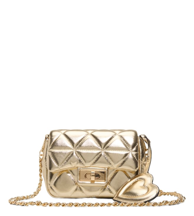 Golden Quilted Leather Cross Body Bag