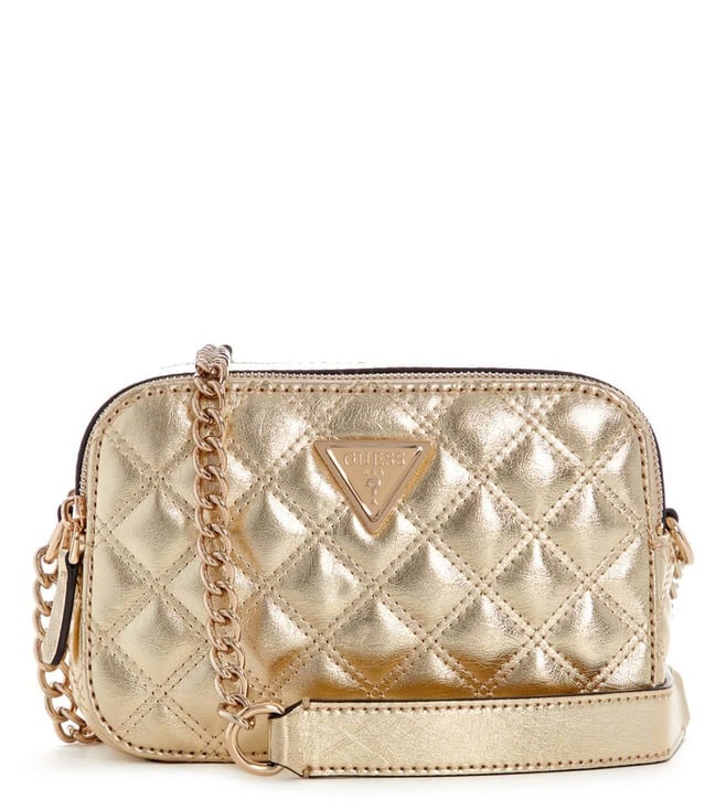 Golden Quilted Leather Cross Body Bag