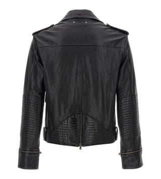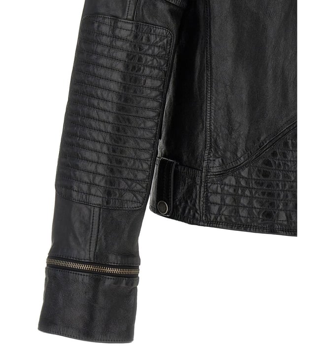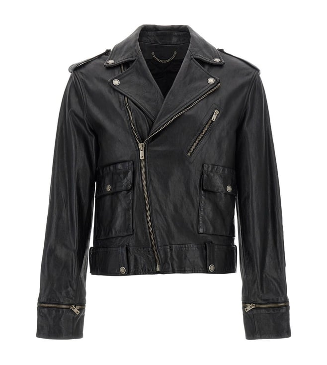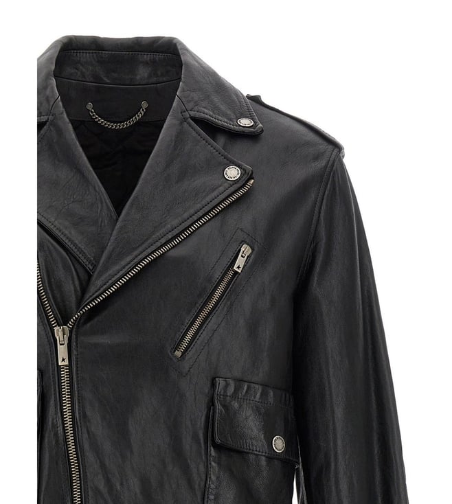 Elevate your style with the Golden Goose Black Jacket. norwood' nail, asymmetric front zip closure, pockets, long cuffed sleeves and quilted elbow patch. True to size fit.