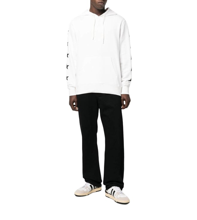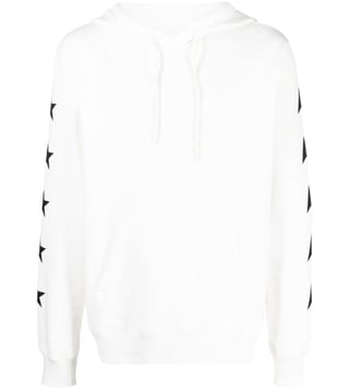 Elevate your style with the Golden Goose White Star Print Sweatshirt. Starprint pullover hoodie from golden goose featuring white/black, cotton, classic hood, drawstring fastening, long sleeves and ribbed hem. Width: corsoeasy.