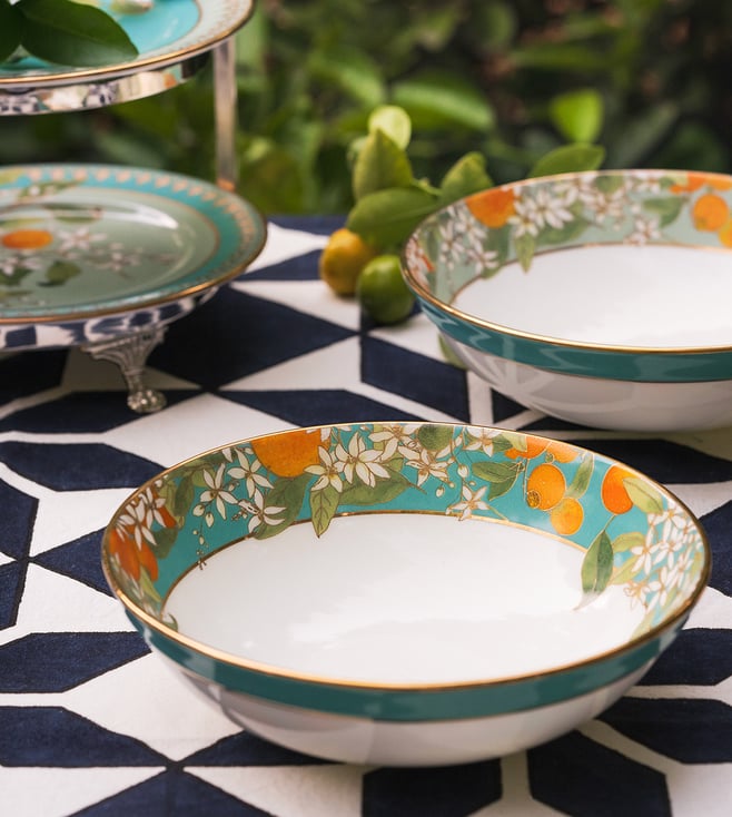 Good EarthGoodearth Green Fine Bone China Tangerine Salad Bowls (Set Of 2)