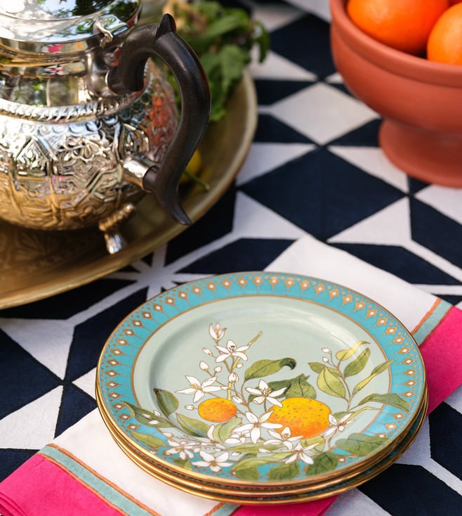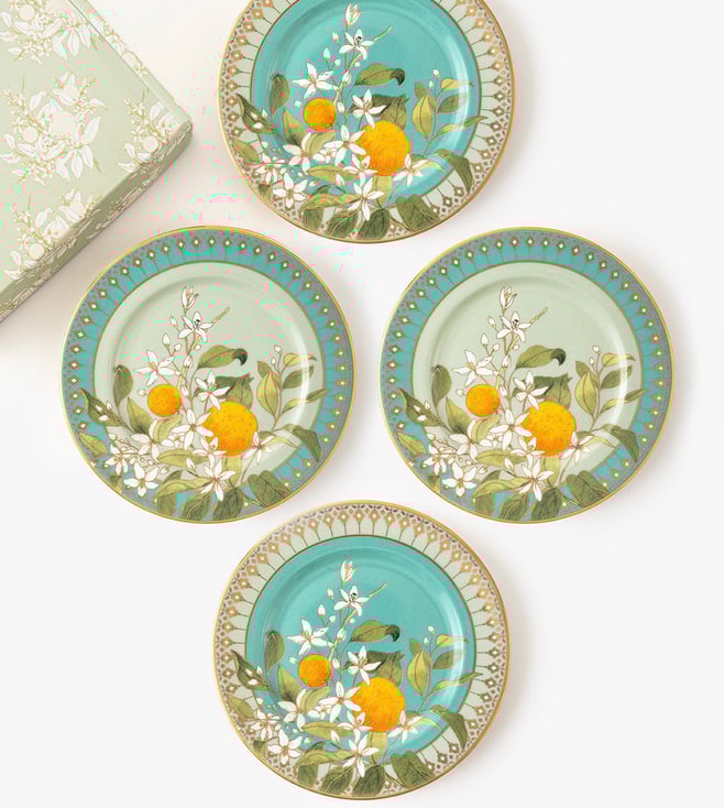Good EarthGoodearth Green Fine Bone China Tangerine Tea Plates (Set Of 4)
