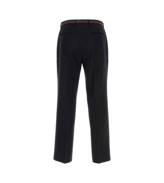 Elevate your style with the Gucci Black Relaxed Fit trousers. Dark blue wool red gucci selvedge detail on the waist belt loops two side pockets two back pockets tab and hook closure Crafted for durability and comfort. Products purchased from Darveys are supported exclusively by the warranty/exchange policies of Darveys and its partner boutiques. Brand owners and their channel partners are not responsible for exchange/warranty services for items purchased through Darveys.