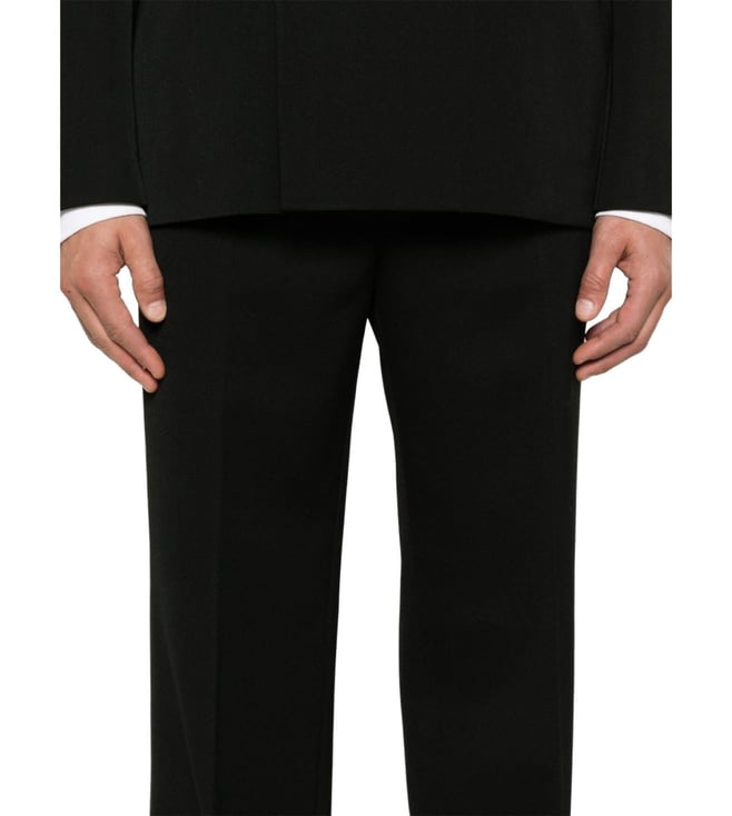 Elevate your style with the Gucci Black Double Breasted Tailored Fit Suit. Doublebreasted wool dress. Composed of doublebreasted blazer with covered button closure, pockets, long sleeves with 'gg' button, central back split and pants with zip hook and button closure, pockets, pence and central crease. True to size fit. Products purchased from Darveys are supported exclusively by the warranty/exchange policies of Darveys and its partner boutiques. Brand owners and their channel partners are not responsible for exchange/warranty services for items purchased through Darveys.