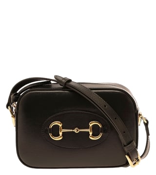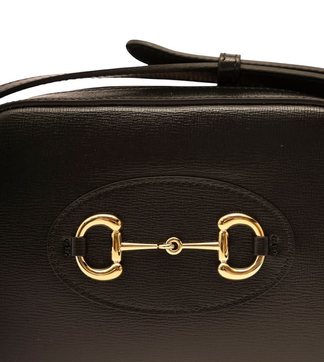 Black horsebit 1955 crossbody bag, zip closure, 1 compartment, outside pocket, textured, adjustable crossbody strap. Products purchased from Darveys are supported exclusively by the warranty/exchange policies of Darveys and its partner boutiques. Brand owners and their channel partners are not responsible for exchange/warranty services for items purchased through Darveys.