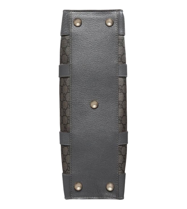Grey and black gg supreme canvas grey leather trim palladium-toned hardware cotton linen lining double gtop handle with 5.5 Dropadjustable canvas shoulder strap Products purchased from Darveys are supported exclusively by the warranty/exchange policies of Darveys and its partner boutiques. Brand owners and their channel partners are not responsible for exchange/warranty services for items purchased through Darveys.