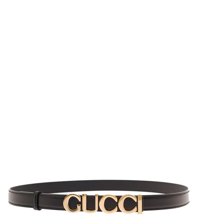 Elevate your casual look with the Gucci casual black Thin Belt. Made from luxurious black leather, this belt features a sleek gold-colored metal logo lettering buckle for a touch of elegance. With adjustable closure and belt loops, it offers a perfect fit for any outfit. The 2 cm heel height adds a subtle lift, making it both stylish and comfortable. Make a statement with this timeless accessory that exudes sophistication and quality craftsmanship. Perfect for the modern woman who values both style and functionality.