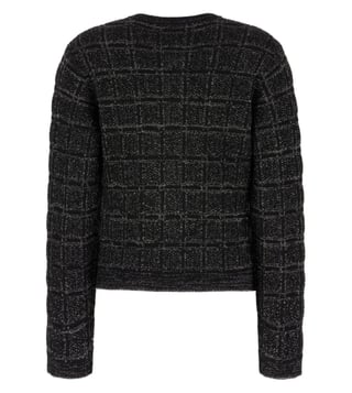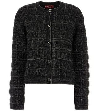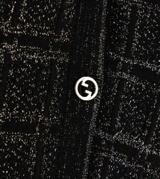 The Gucci Black Wool and Jacquard Cardigan is a luxurious blend of elegance and modernity, crafted for the discerning woman. This exquisite piece features a captivating jacquard pattern that dances across the fabric, a harmonious blend of 50% wool and 50% viscose, offering both warmth and a silky touch. The cardigan's sleek closure adds a touch of sophistication, making it a versatile addition to any wardrobe. Perfect for elevating everyday ensembles or adding a chic layer to evening attire.