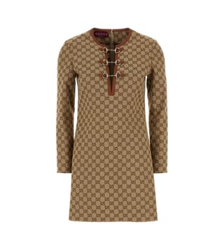 gucci Brown Gg Horsebit-Detail Mini Graphic Dress