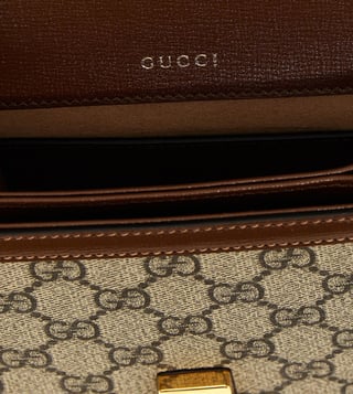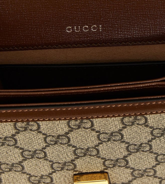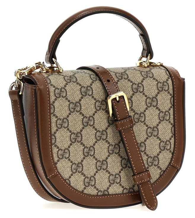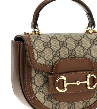Beige horsebit 1955 handbag in gg supreme fabric and leather, front metal clamp application, magnetic closure, 1 compartment, fixed handle, removable shoulder strap. Products purchased from Darveys are supported exclusively by the warranty/exchange policies of Darveys and its partner boutiques. Brand owners and their channel partners are not responsible for exchange/warranty services for items purchased through Darveys.