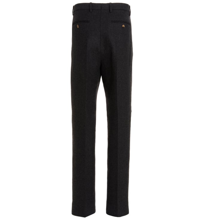 Elevate your style with the Gucci Charcoal Relaxed Fit trousers. Dark gray cashmere and wool pants with zip and covered button closure, front faux pockets and back slashed pockets. true to size fit Crafted for durability and comfort. Products purchased from Darveys are supported exclusively by the warranty/exchange policies of Darveys and its partner boutiques. Brand owners and their channel partners are not responsible for exchange/warranty services for items purchased through Darveys.