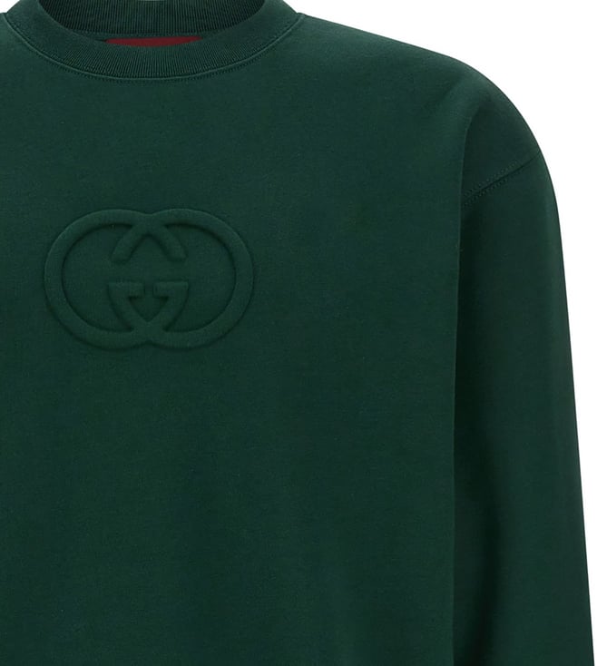 Immerse yourself in the epitome of luxury with the Gucci Dark Green Logo Sweatshirt. This masterpiece, crafted for the discerning gentleman, boasts a rich, deep green hue that exudes sophistication. The iconic Gucci logo pattern subtly adorns the fabric, offering a nod to timeless elegance. Full sleeves and a classic crew neck provide a comfortable yet stylish fit, while the premium cotton fabric ensures a soft touch against the skin. Elevate your wardrobe with this quintessential blend of fashion and comfort.