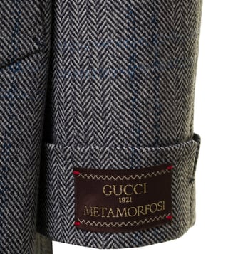 Upgrade your outerwear collection with the GUCCI Grey Oversized Fit single breasted coat. Crafted with high-quality materials, this trench coat features single-breasted coat, notched revers, front button fastening, long sleeves with cuffs, exposed 'gucci 1921 metamofosi' label on the left cuff, two oblique welt pockets at the front, straight hem, houdstooth, black and white, wool, cashmere and polyamide, oversize fit. for unmatched warmth and style.