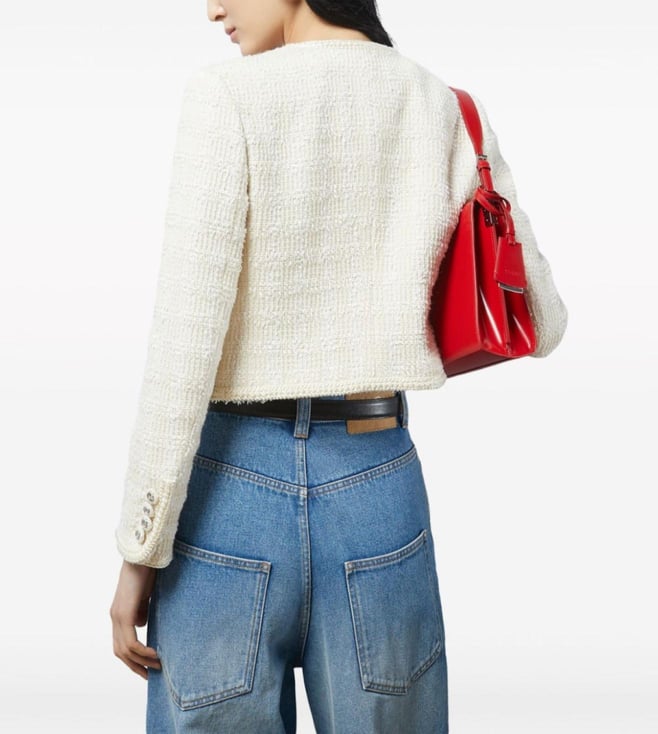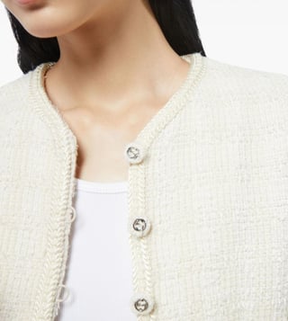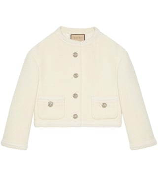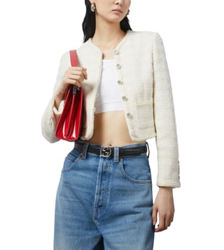 The Gucci White Jacket is a masterpiece of modern elegance, seamlessly blending classic sophistication with contemporary flair. Crafted from the finest materials, its pristine white fabric exudes a sense of purity and luxury. The jacket features sleek lines and a tailored fit, accentuated by subtle gold accents and the iconic Gucci emblem. Its versatile design makes it perfect for both formal occasions and casual outings, ensuring you stand out with an air of effortless chic and timeless style.