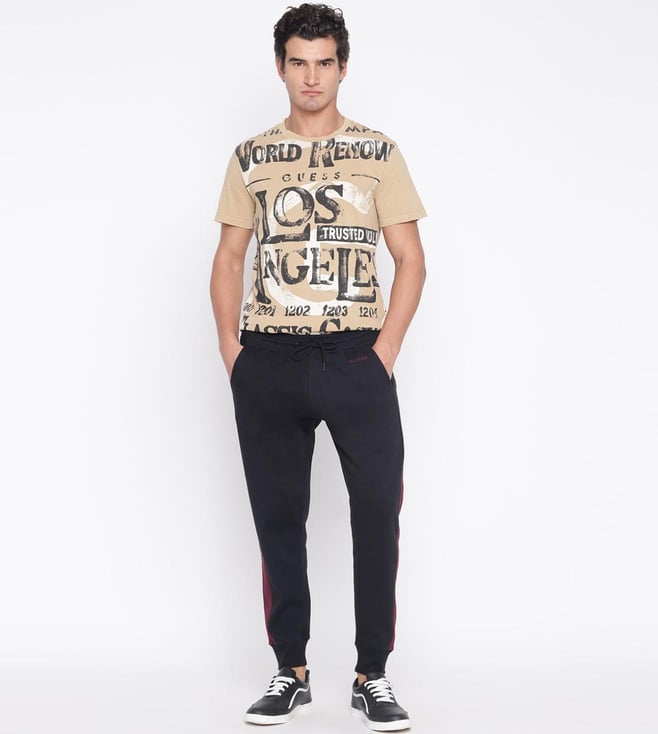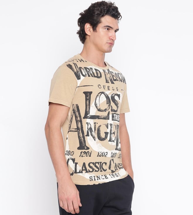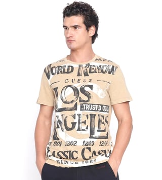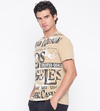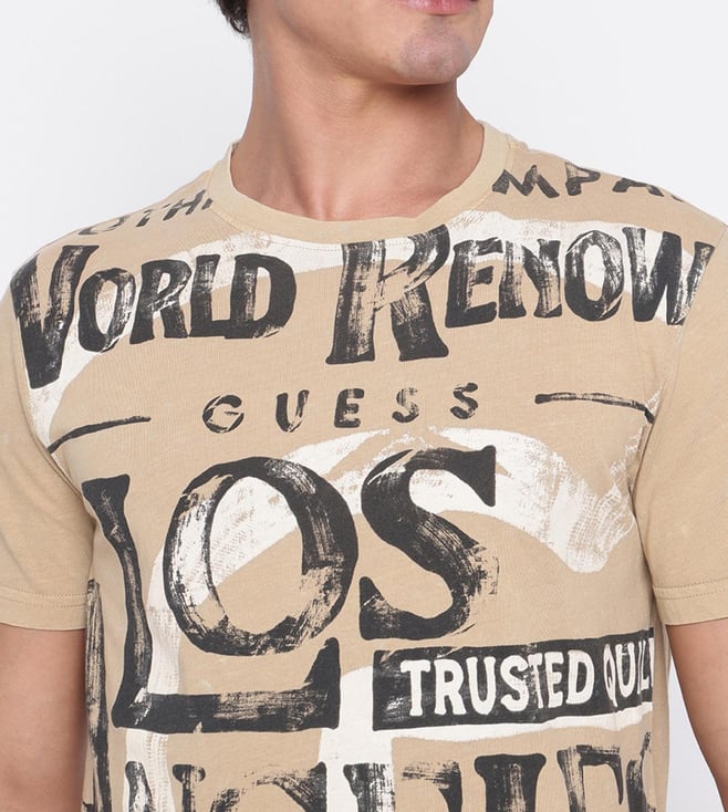 Guess Beige Printed Crew Neck Short Sleeve T-shirt