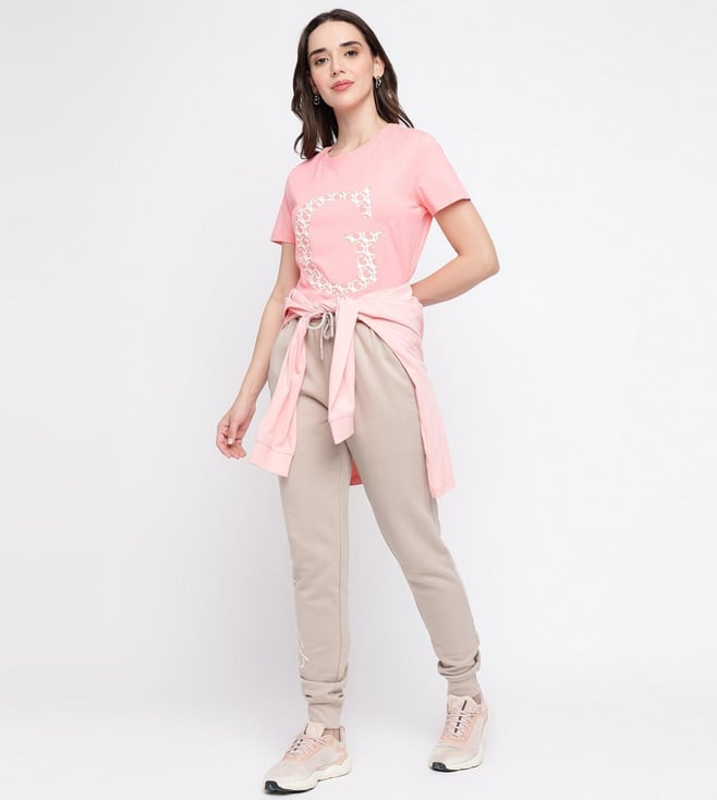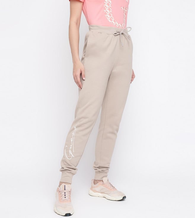 Guess Beige Solid Joggers With Drawstring Closure